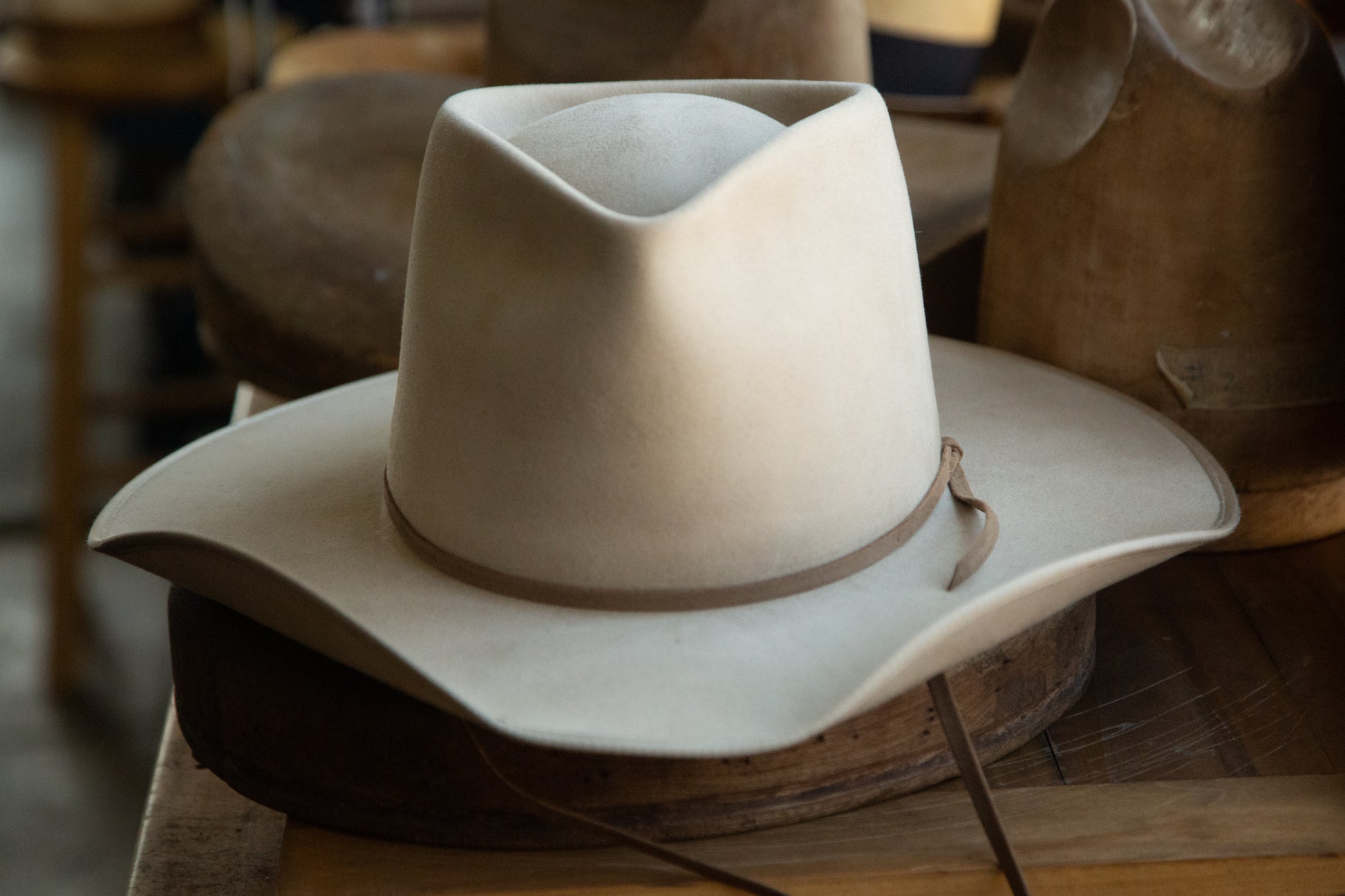 As a leading man, Randolph Scott dominated the silver screen with his charismatic presence and rugged good looks. During his career Scott starred in a dozen Western films and embodied the classic, weathered hero of the Old West, audiences are familiar with today. From his role as peacekeeping lawman Dan Mitchell in Abilene Town (1946) to ex-marshal Gil Westrum in Ride the High Country (1962) Scott is one of Hollywood’s most memorable Western movie stars. Baron is proud to offer this homage to Randolph Scott and his longstanding career as a gunslinging cowboy. Our “Randolph” replica is modeled after hats seen in popular films such as Gunfighters (1947), Albuquerque (1948), The Cariboo Trail (1950), Ten wanted Men (1955). Handmade to order. Available in 100% rabbit and 100% beaver felt.